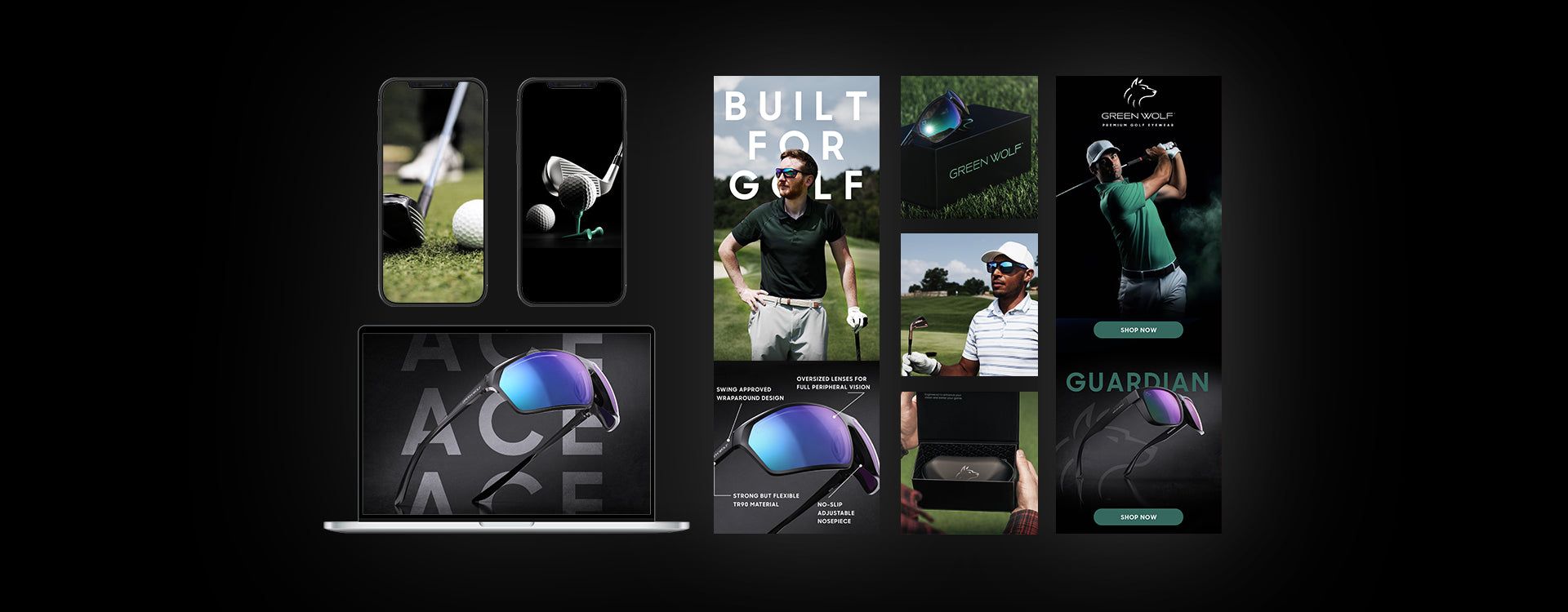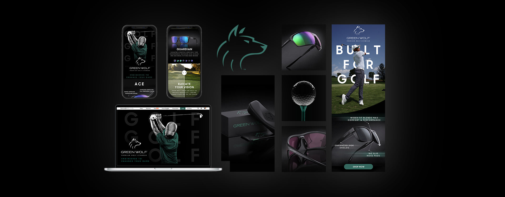 I was presented with just the idea of a golf eyewear brand called Green Wolf. From the ground up, I gave this brand life and an identity. The branding, strategies and visuals are all based on what I created for Green Wolf.