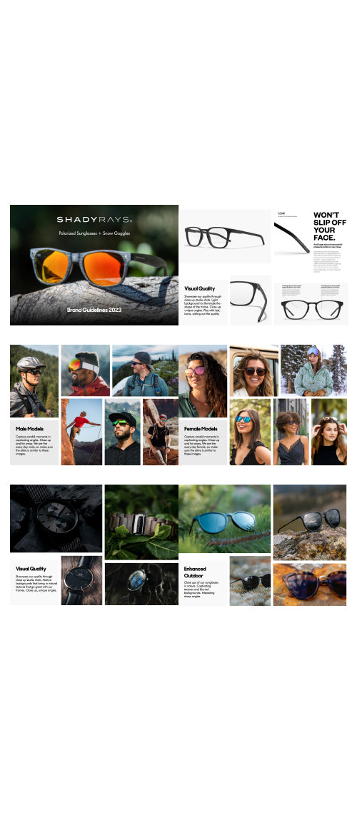 I created visual direction and brand guidelines for Shady Rays. I created their brand identity that is recognizable in the industry today. This direction helped them stand out in a saturated market.